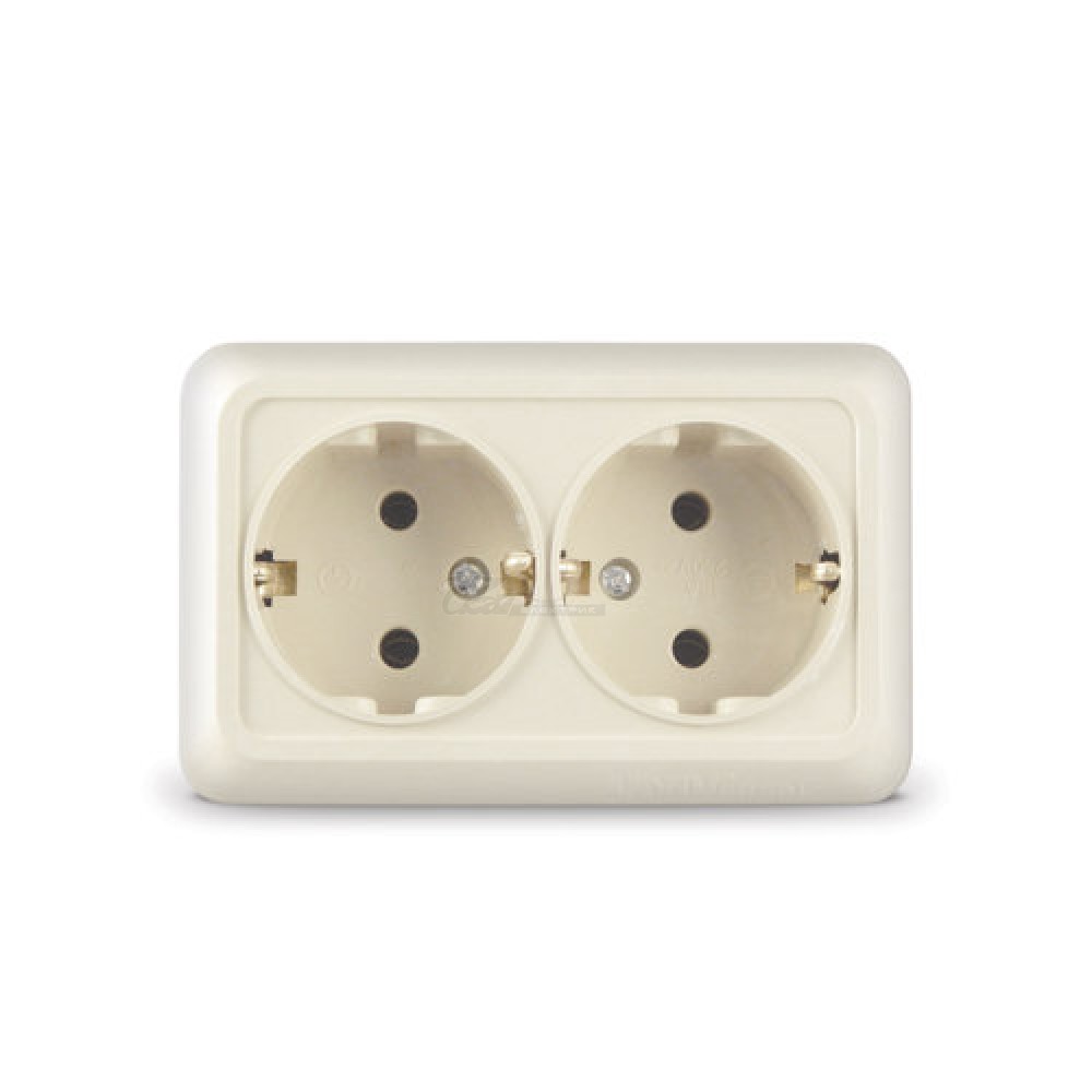 Розетка 2м о/п с/з 16А бежевая Universal Олимп