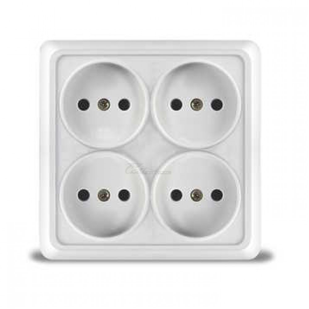 Розетка 4м о/п б/з 16А квадрат белая Universal Олимп
