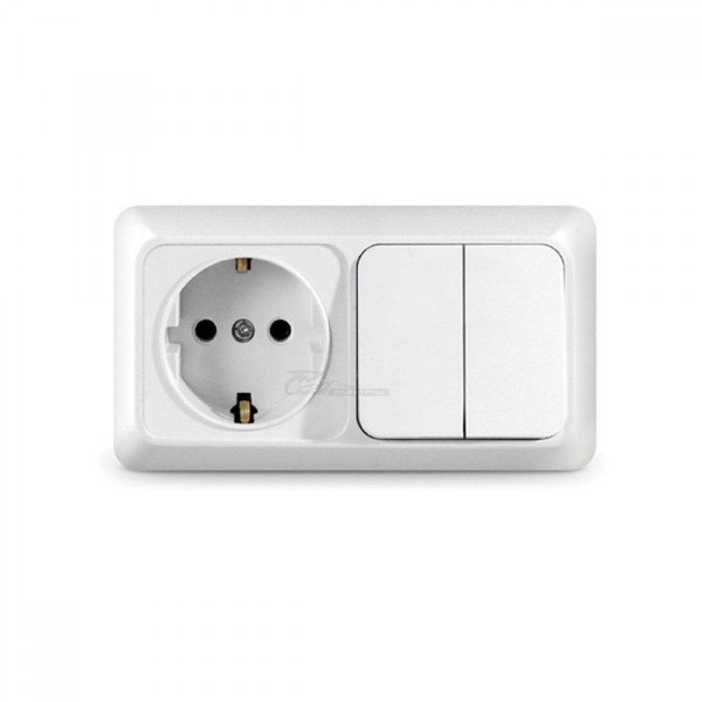 Блок Олимп (выкл 2кл. + роз с/з) гориз. белый 10А IP20 Universal