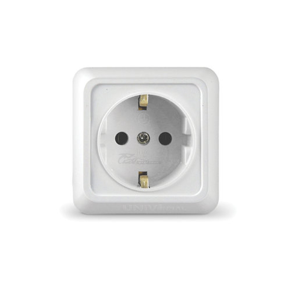 Розетка 1м о/п с/з 16А белая Universal Олимп