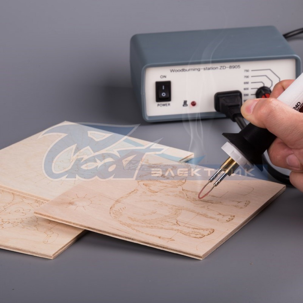 Прибор для выжигания по дереву предназначен для выжигания рисунков или орнамента на любом деревянном предмете, например, на рамке для портрета или дощечке. Также он может выжигать на коже или плавить пластмассу.