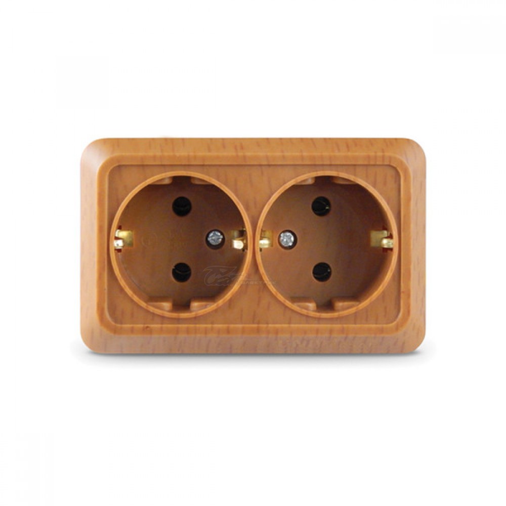 Розетка 2м о/п с/з 16А бук Universal Олимп