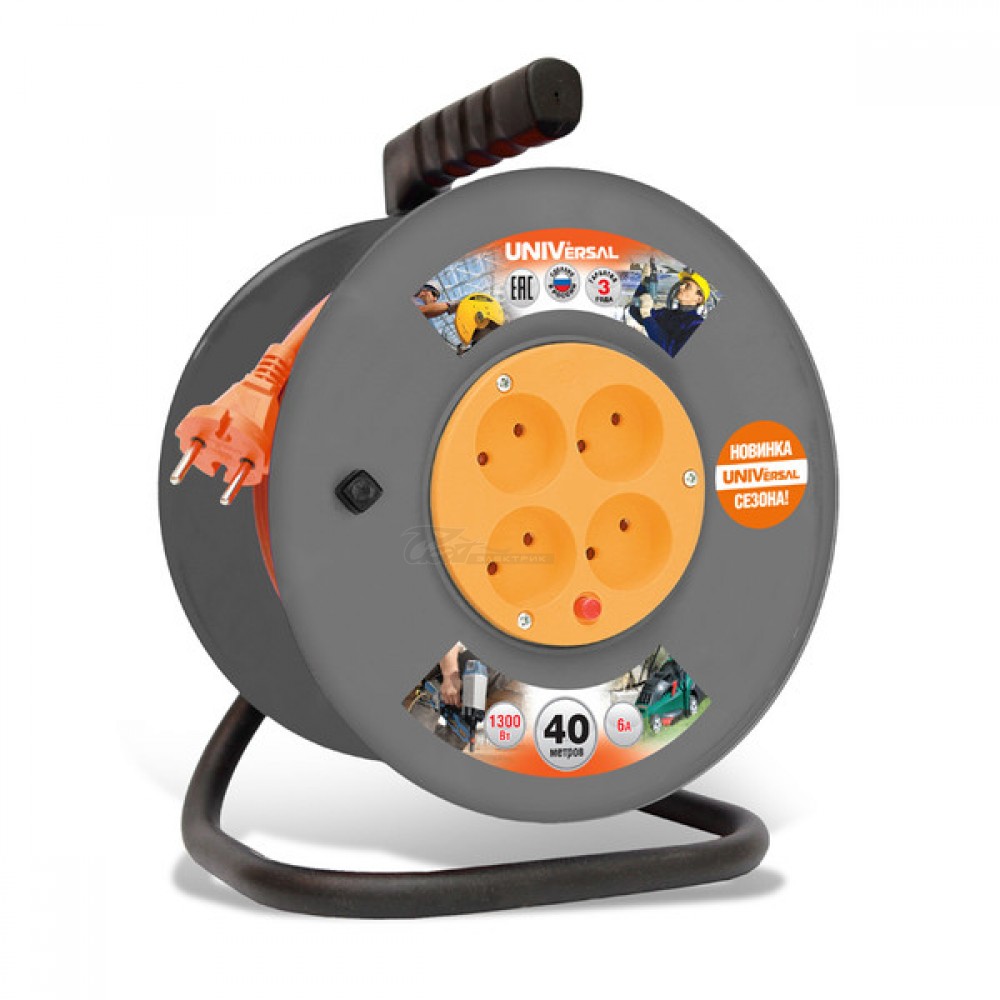 Удлинитель Universal ВЕМ-250 4роз 30м б/з на катушке IP44 6А (ПВС2*0,75)