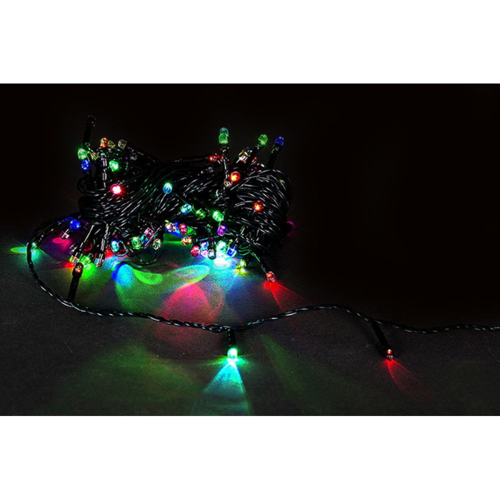 Гирлянда светодиодная А-001A RGB нить 10м, зеленый провод 100LED 8 режимов RGB