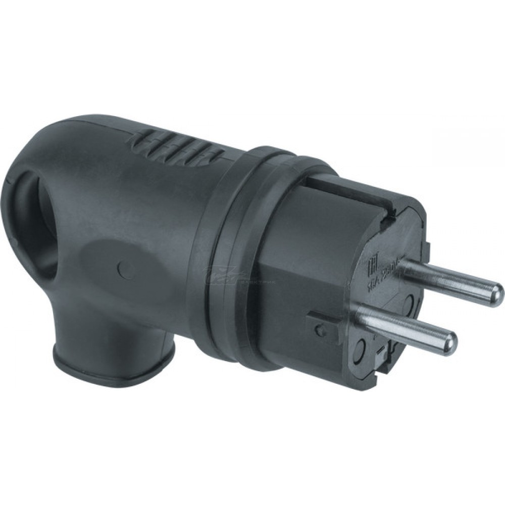 Вилка сетевая Navigator с ушком с/з IP44 каучук угловая