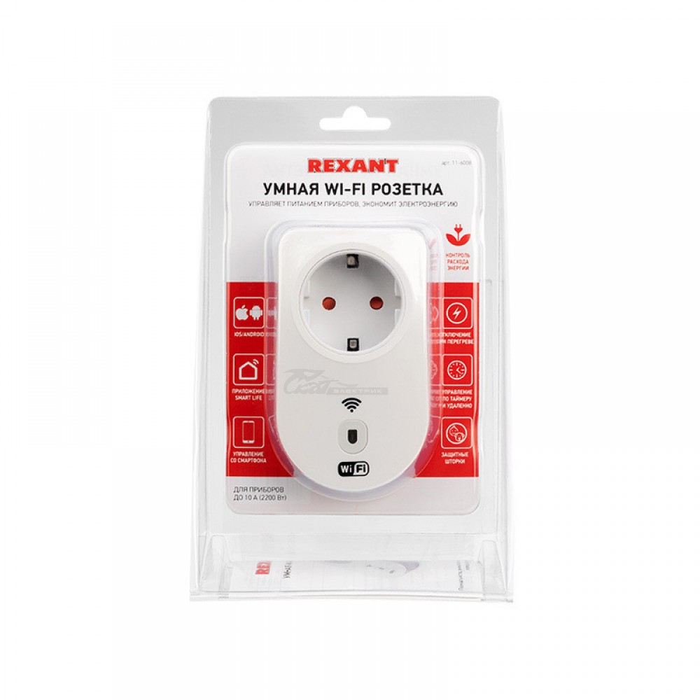 Розетка Wi-Fi 10А SmartLife(TuyaAPP), контроль потребления REXANT
