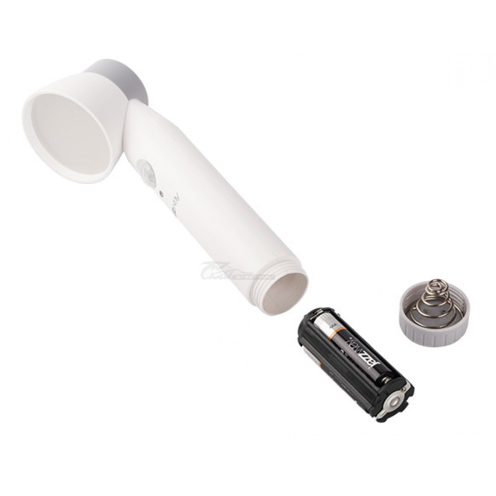 Два режима работы: постоянное свечение и автоматическое включение. В автоматическом режиме при появлении движущегося объекта в зоне «видимости» датчика движения происходит включение фонаря. Вторым обязательным условием включения является недостаточный уровень освещенности. Дистанция срабатывания до 3 метров, диапазон обнаружения 120 градусов, выключение через 30 секунд Цветовая температура 6000 – 7000 К В комплект поставки входит лент-липучка, которая позволяет закреплять подставку-держатель на гладких поверхностях, и два самореза с дюбелями.