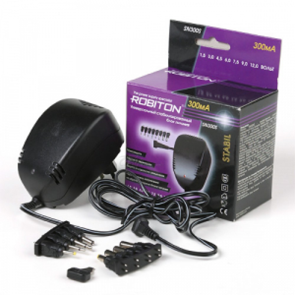 Адаптер/блок питания ROBITON SN1000S 1000мА стабилизированный, 8 насадок BL1