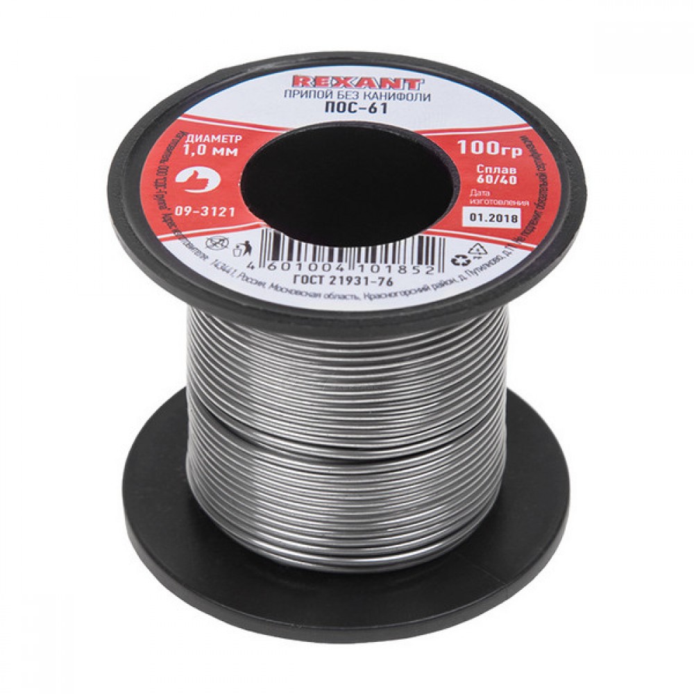 Припой ПОС-61 без канифоли d1,0мм,100г катушка REXANT