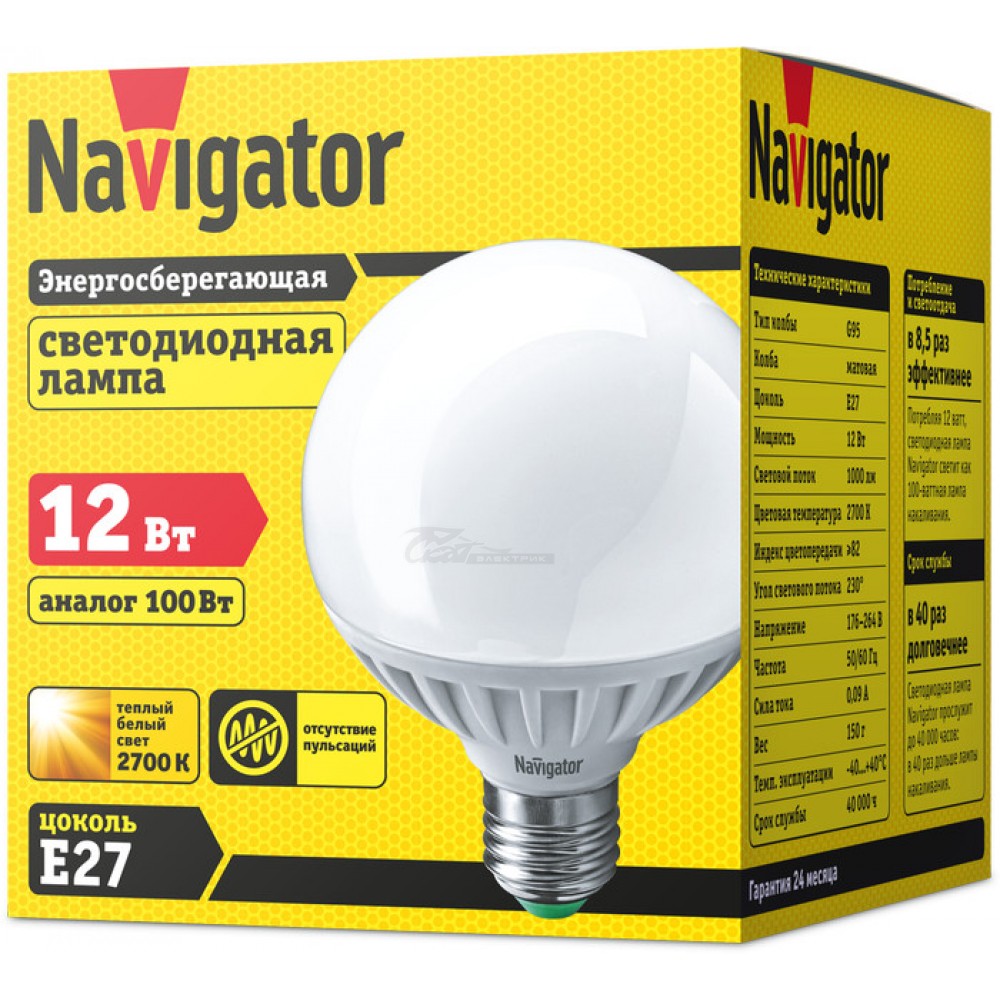 Лампа светодиодная Navigator G95 12W 2700K E27 шар
