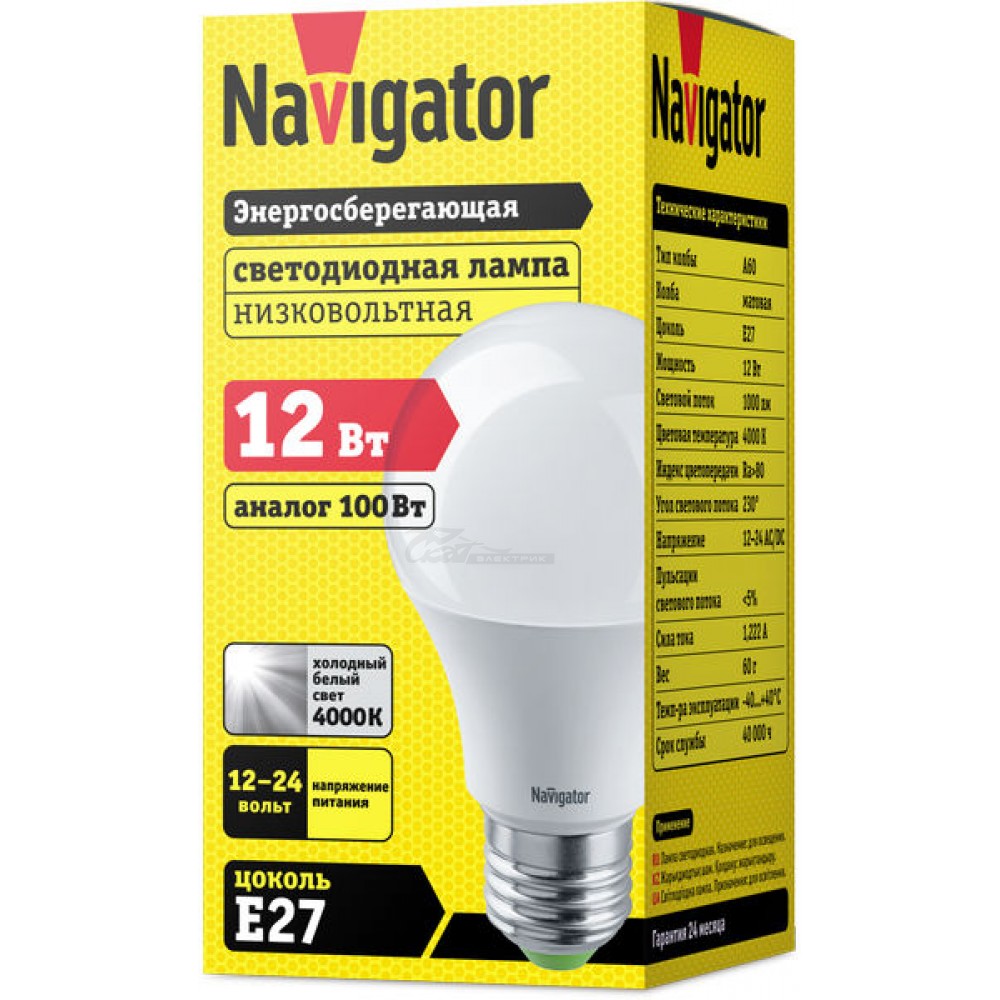 Лампа светодиодная Navigator низковольтная A60 12Вт 12-24v 4000K E27