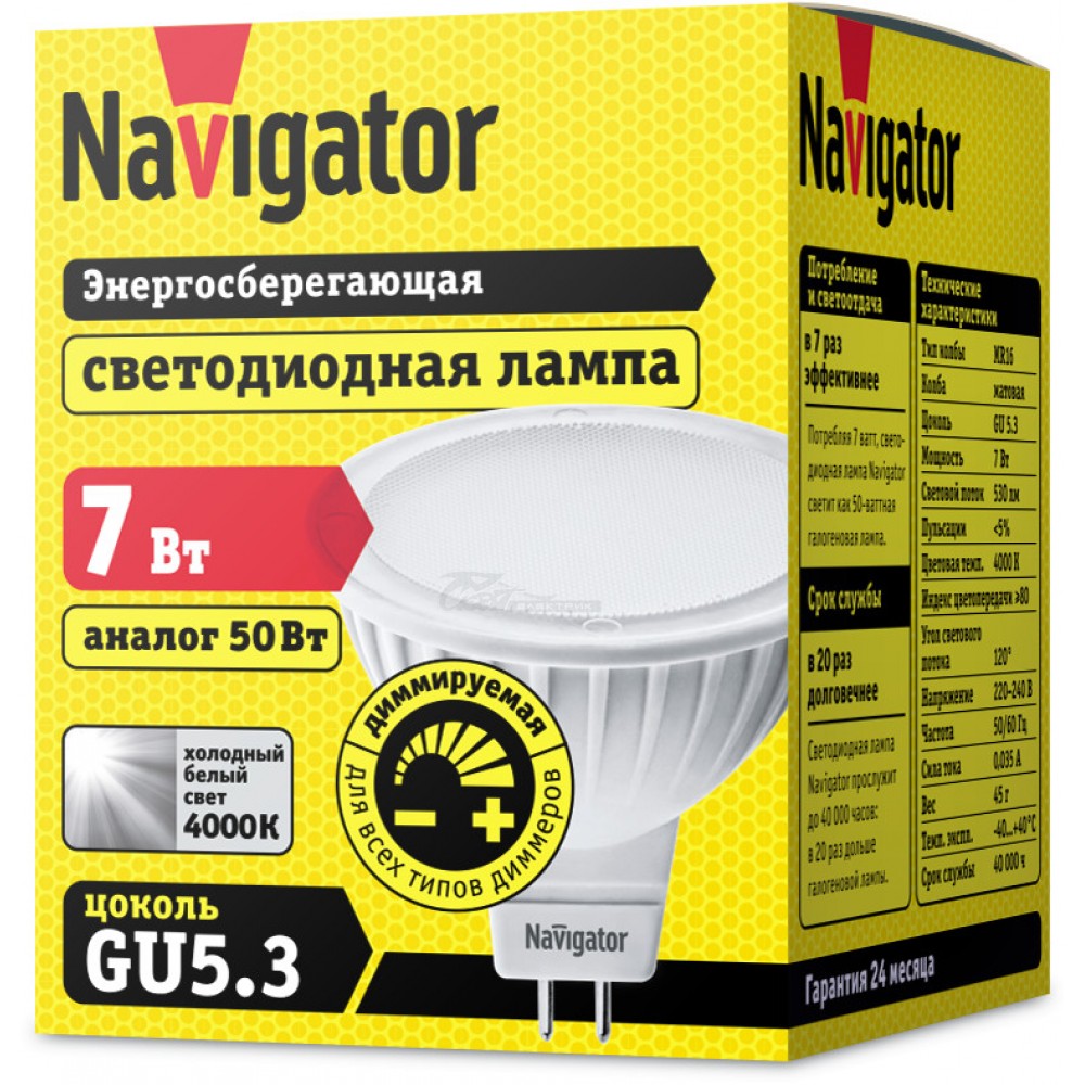 Лампа светодиодная NLL-MR16-DIM GU5.3 7W 4000K диммируемая Navigator