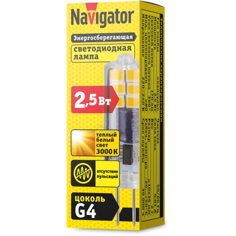 Лампа светодиодная Navigator NLL-S-G4 2.5W 3000K 170лм 220V 10х36мм без пульсаций