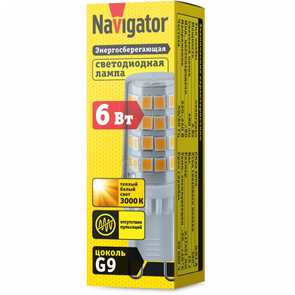 Лампа светодиодная Navigator NLL-P-G9 6W 4000K 500лм 220V 17х51мм без пульсаций