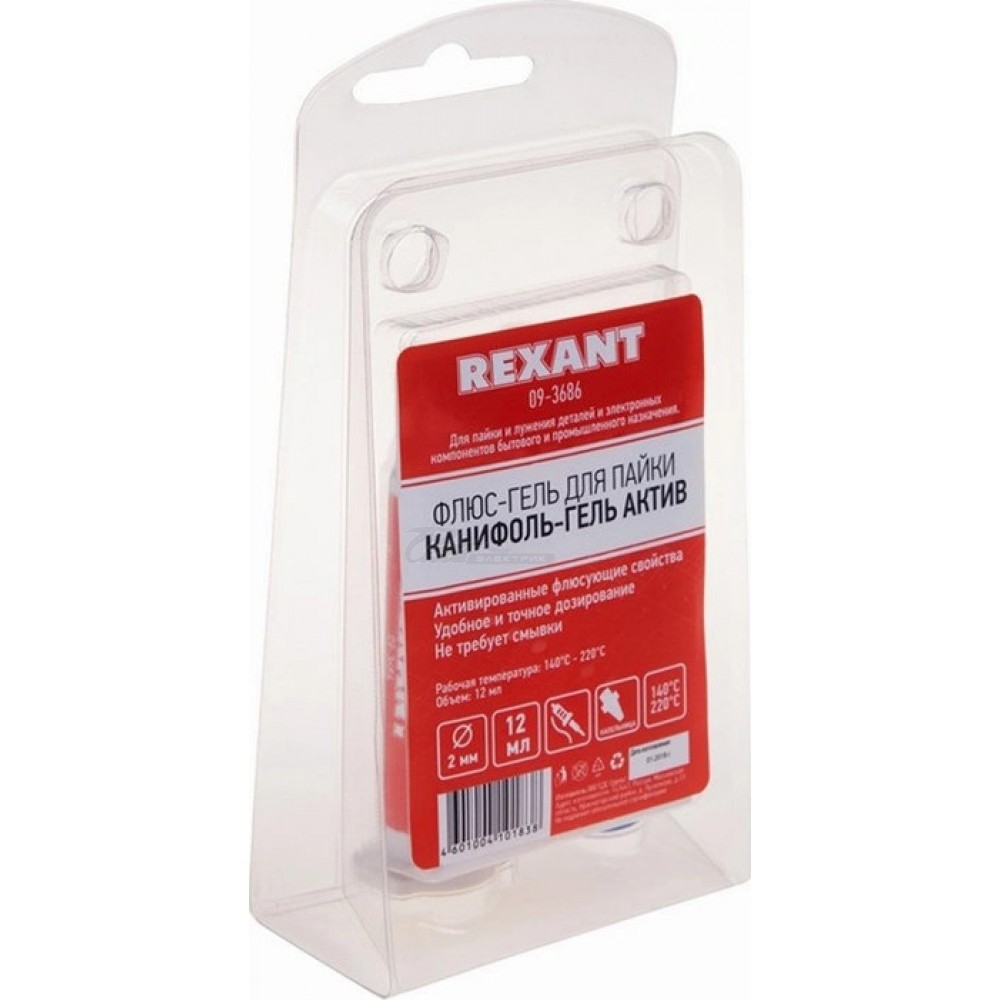 Флюс-гель для пайки Канифоль-Гель Актив 12 мл REXANT в шприце предназначен для пайки и лужения деталей при сборке и ремонте радио-электронной аппаратуры в промышленности и быту.