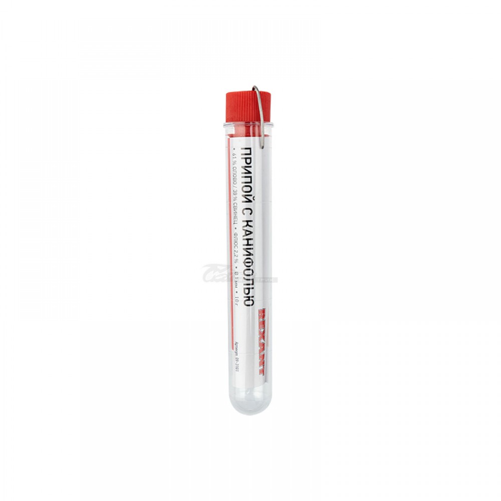 Припой ПОС-61 с канифолью 10гр (d=1мм) (Sn61; Pb39) колба REXANT