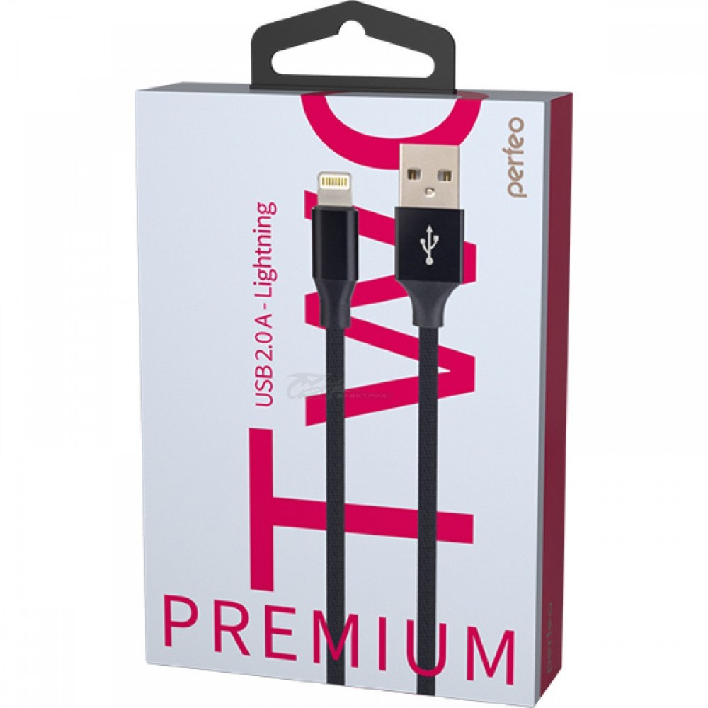 Шнур шт. USB A - Lightning 2м Черный BOX Perfeo