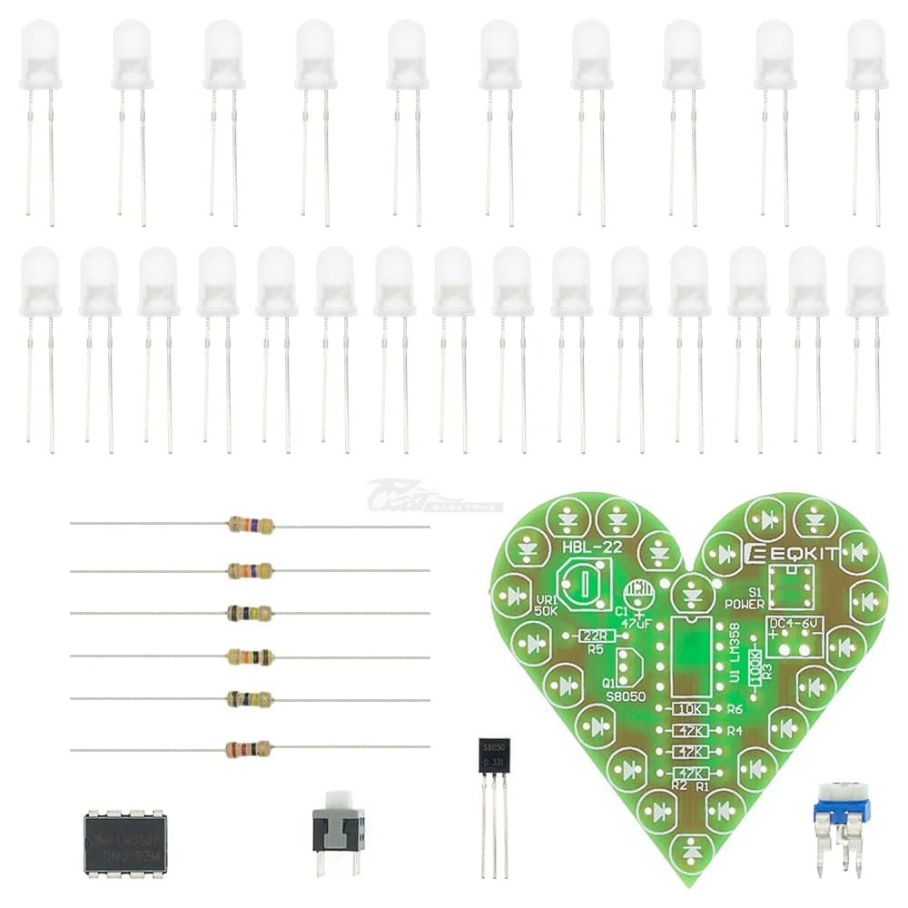Конструктор электронный DIY 36пр. "Сердце" 50*50мм