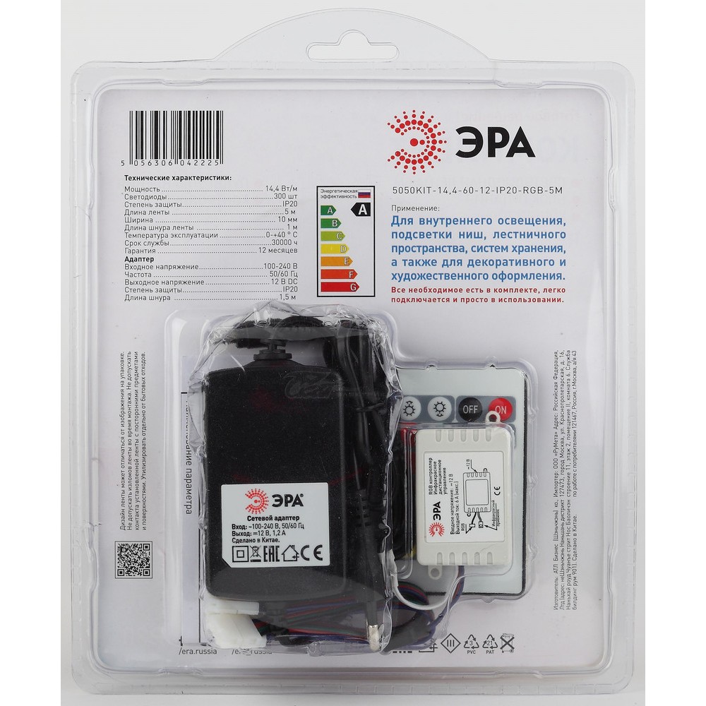 Комплект LED ленты 12v RGB 5050 14,4Вт/м IP20 5м ЭРА