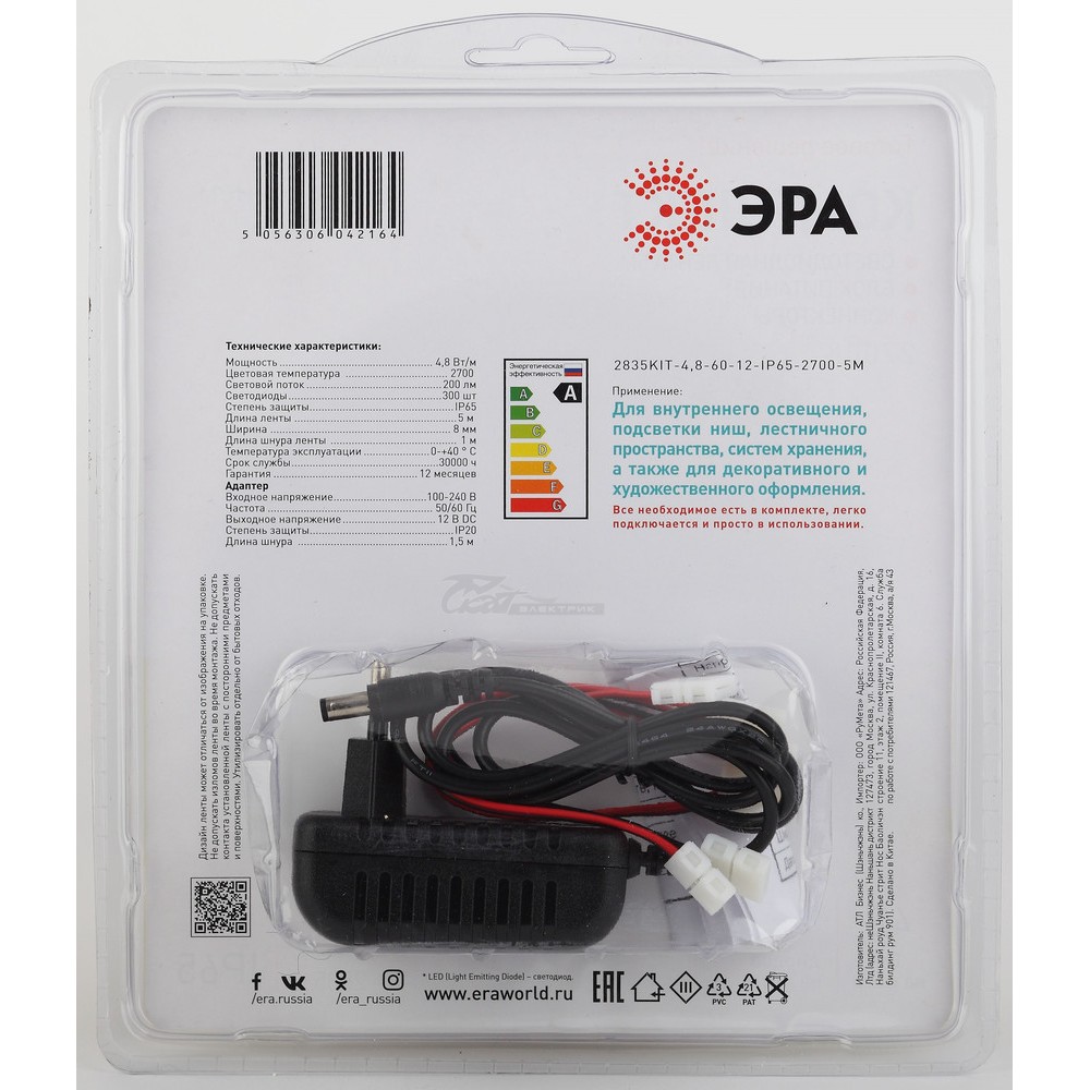 Комплект LED ленты 12v 2700k 2835 4,8Вт/м IP65 5м ЭРА