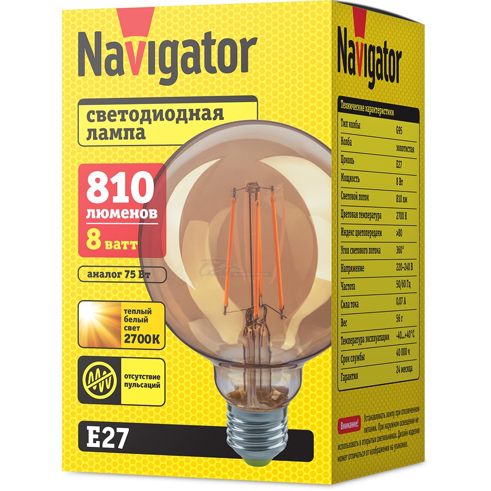 Лампа светодиодная декоративная G95 8W 2700K E27 шар Navigator