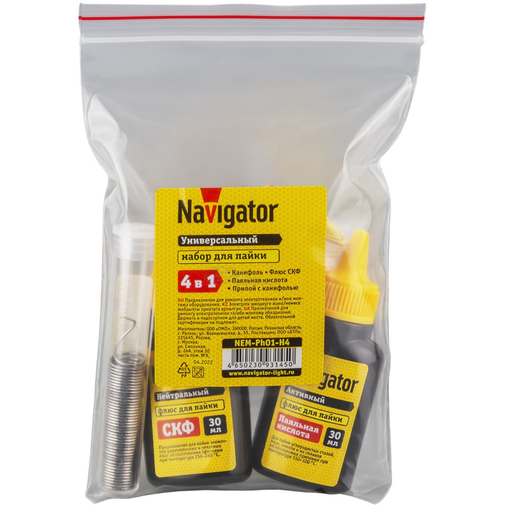 Набор для пайки 4 предмета (канифоль, СКФ, кислота, припой) Navigator