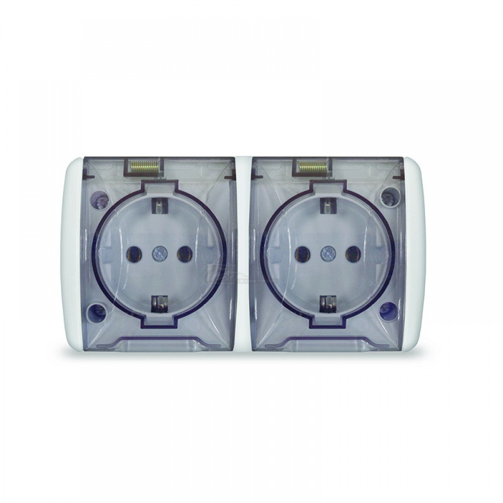 Розетка 2м о/п с/з крышка прозрачная 16А IP54 Клио Universal
