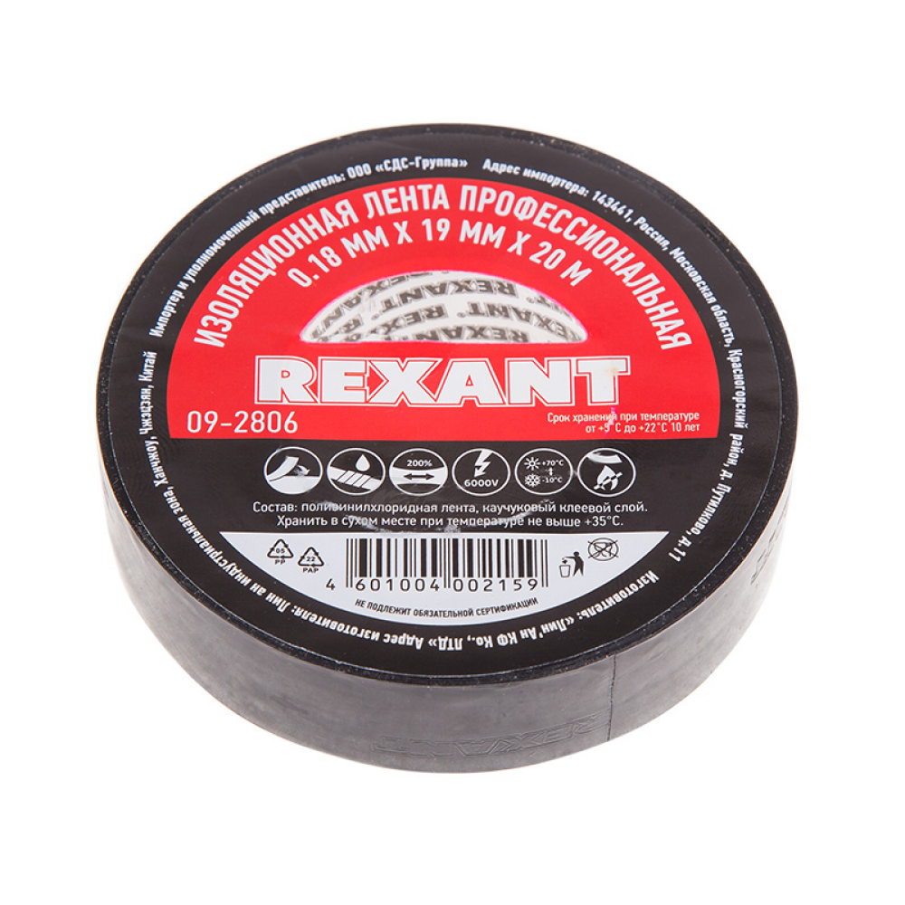 Изолента REXANT профессиональная чёрная 0,18мм*19мм*20м