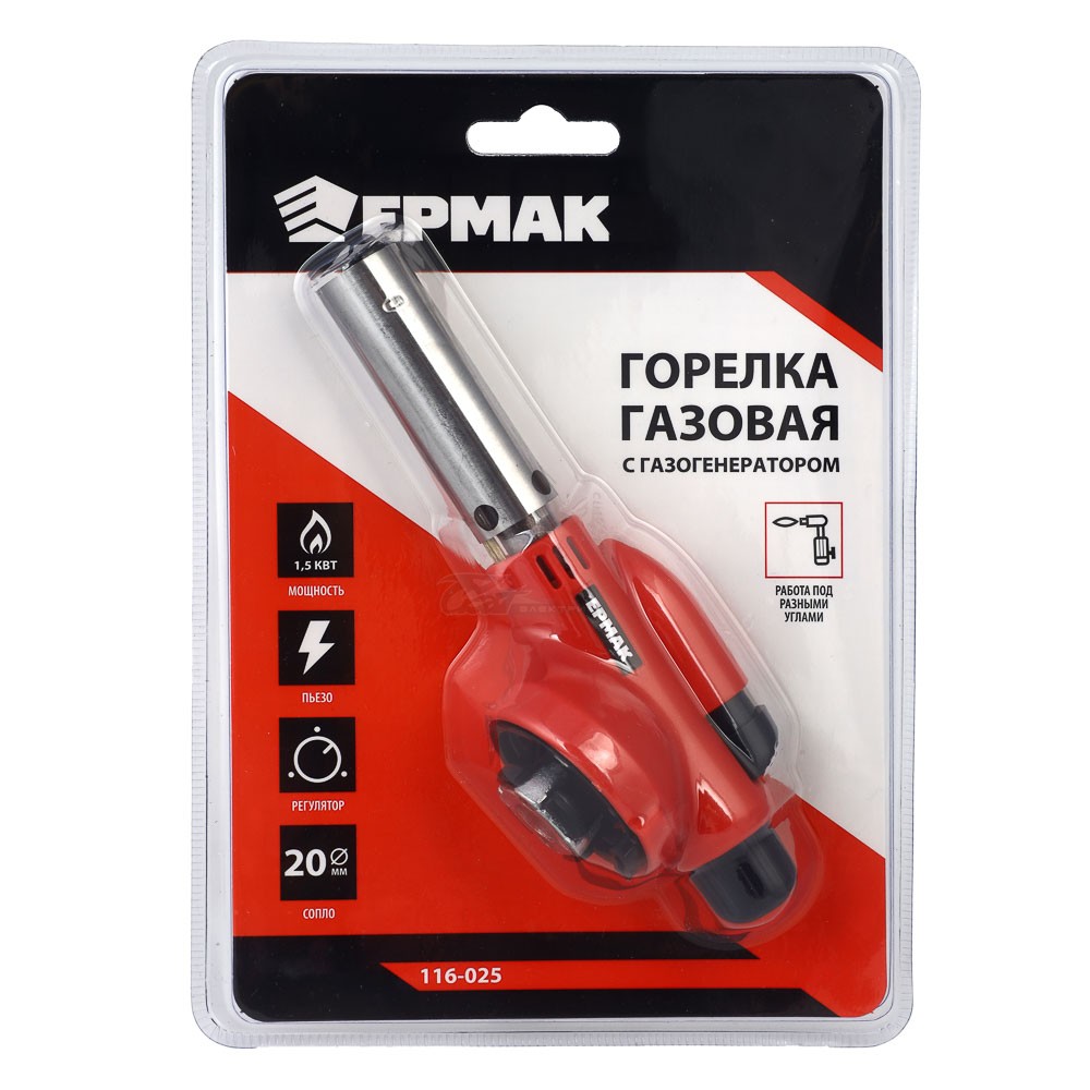 Горелка газовая ПРОФ с подогревом газа, сопло 16мм, прямая ЕРМАК