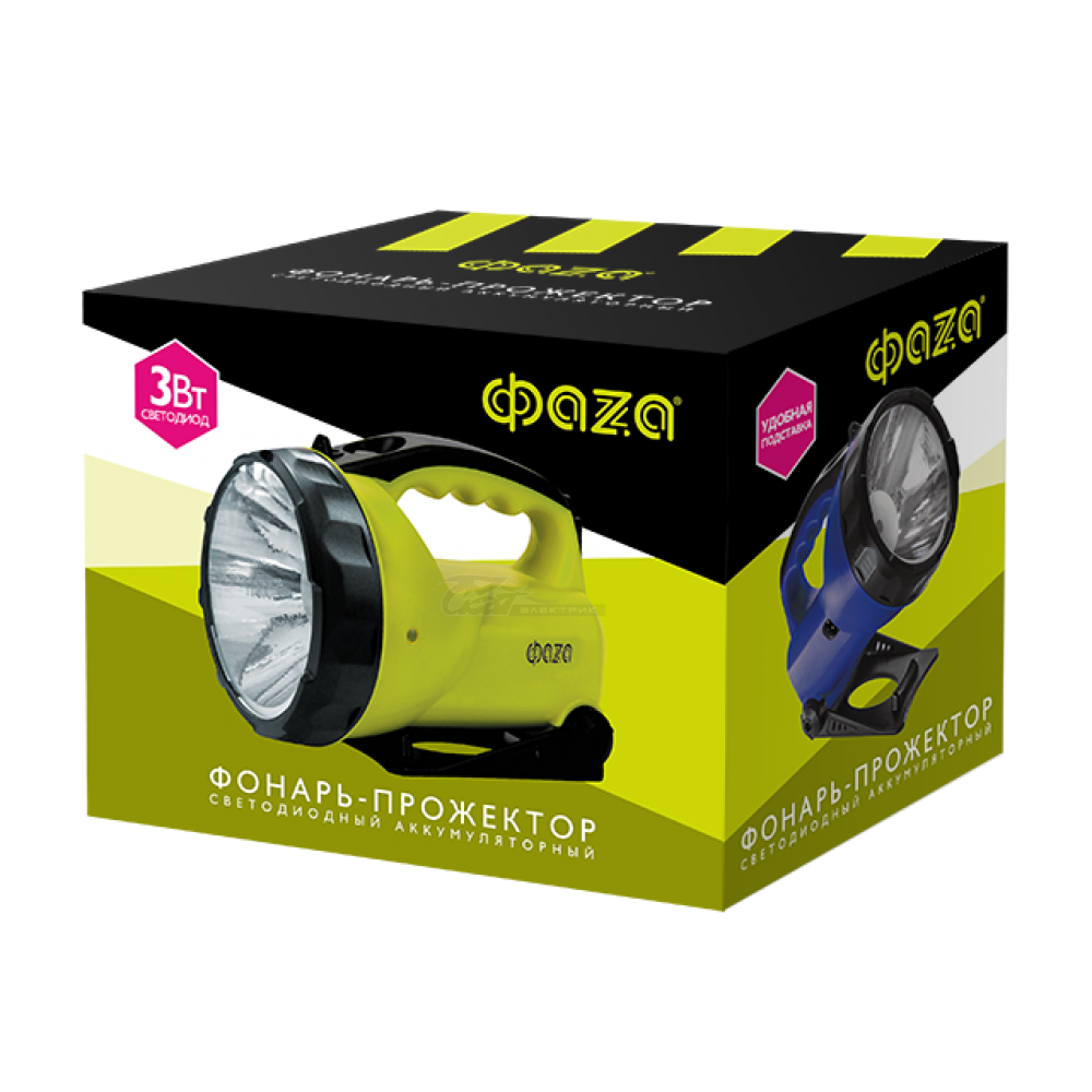 Фонарь-прожектор аккумуляторный ФAZA AccuF6-L3W-gn зеленый