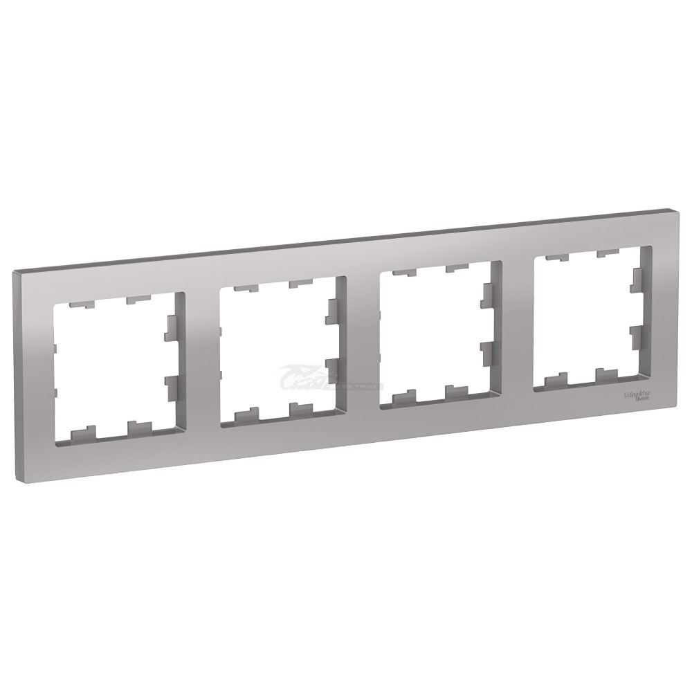 Рамка Schneider Electric AtlasDesign (цвет алюминий) четырёхместная. - Устанавливается в вертикальном и горизонтальном положениях. - Лицевые детали из качественного ABS-пластика, устойчивого к царапинам и УФ-излучению. - Позволяет гармонично вписать электроустановочное изделие в интерьер помещения.