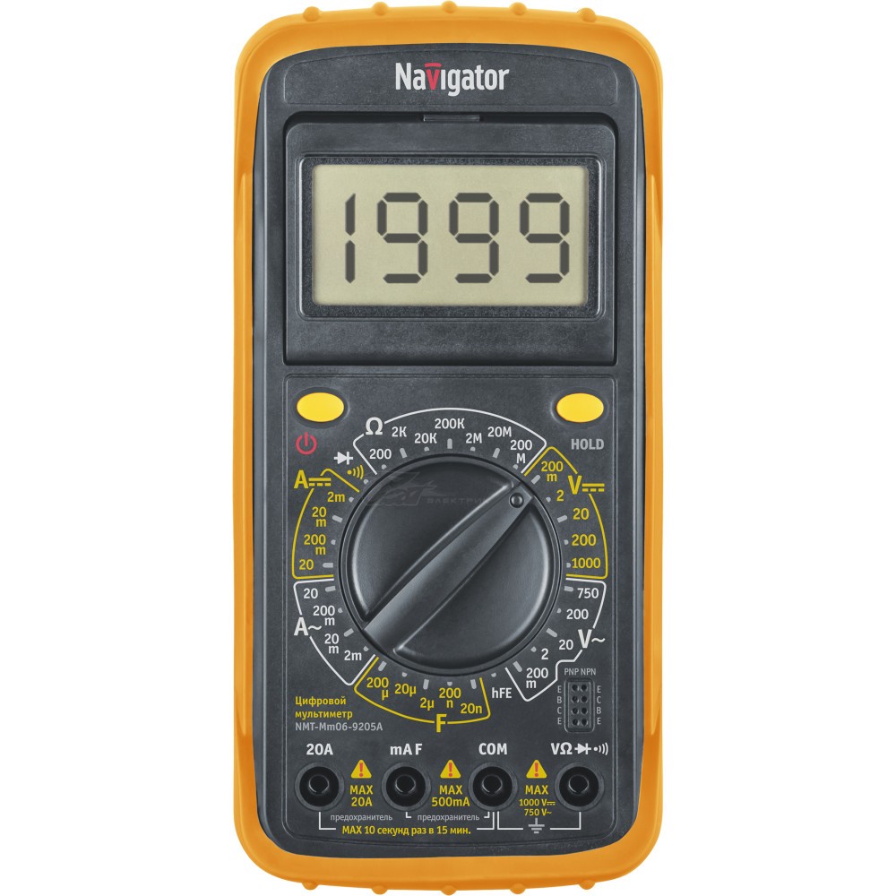 Цифровой мультиметр Navigator NMT-Mm06-9205А используется для проведения измерений электротехнических параметров сети и приборов при электромонтажных работах в быту и на производстве. Четырехпозиционный дисплей позволяет комфортно использовать прибор в горизонтальном и вертикальном положении.