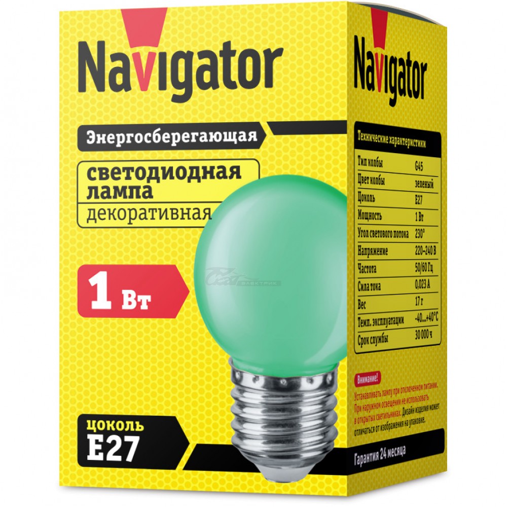 Лампа светодиодная цветная G45 1Вт 230v зеленая E27 Navigator
