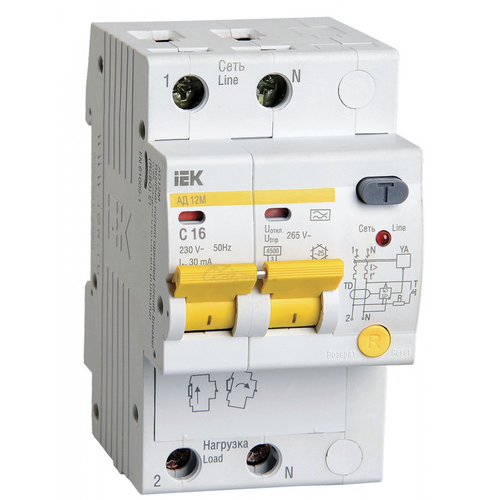 Дифференциальный автоматический выключатель АД12М 2Р С16 30мА IEK