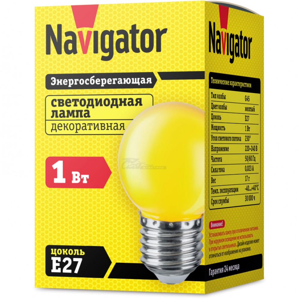Лампа светодиодная цветная G45 1Вт 230v желтая E27 Navigator