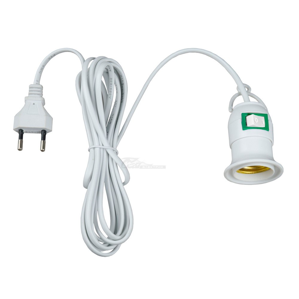 DLC-P-T50B-E27 3M WHITE Патрон подвесной с выключателем и штепсельной вилкой. 300 см. Цоколь Е27. Белый. TM Uniel