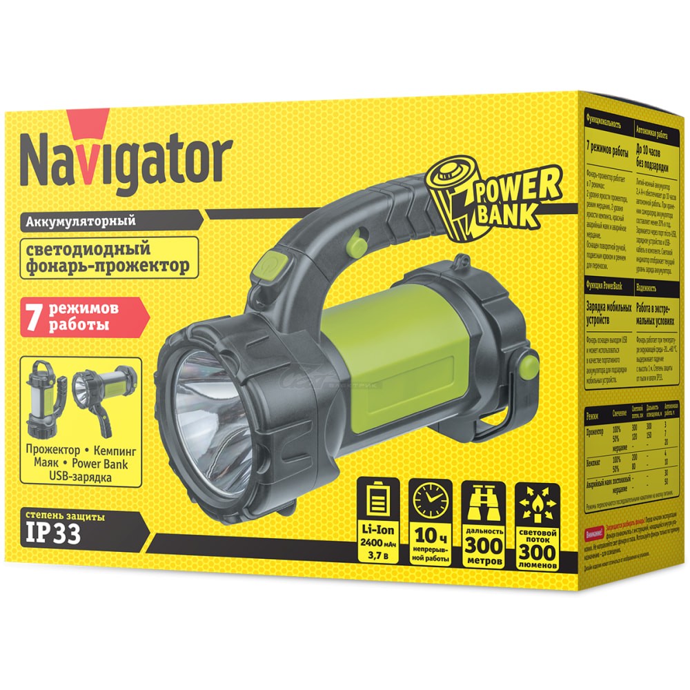 Фонарь прожектор NPT-SP24 1LED 3Вт + 10LED 3Вт 3,7В 2,4Ач 7 режимов Navigator