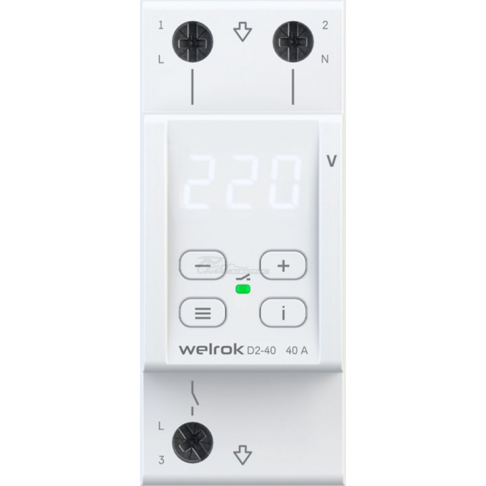 Реле напряжения 1ф 40А 8800ВА белый индикатор, 2 DIN мод. Welrok