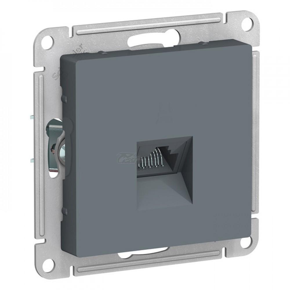 Механизм Schneider Electric AtlasDesign (цвет грифель) розетки компьютерной с разъёмом RJ45 категория 5е предназначен для удобного и быстрого подключения вашего компьютера к локальной вычислительной сети. - Лицевые детали из качественного ABS-пластика, устойчивого к царапинам и УФ-излучению. - Усиленные прямые монтажные лапки для лучшей фиксации механизма в монтажной коробке.