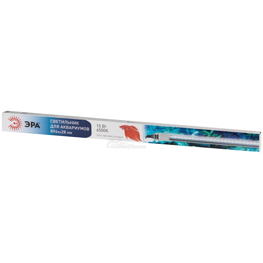 Лампа для аквариумных растений и рыб Т8 ЭРА FITO-15W-Ra90-Т8-AQUA в комплекте с с влагозащищенными патронами IP65 и проводом подключения идеально подойдет для Вашего аквариума. Холодный белый свет создает ощущение кристальной чистоты. Лампа имеет оптимальный спектр свечения для растений и рыб. В светильнике используются светодиоды нового поколения, что гарантирует долгий срок службы и сверхэкономичное энергопотребление. Герметичная колба из кварцевого стекла не подвержена коррозии и засолам.
