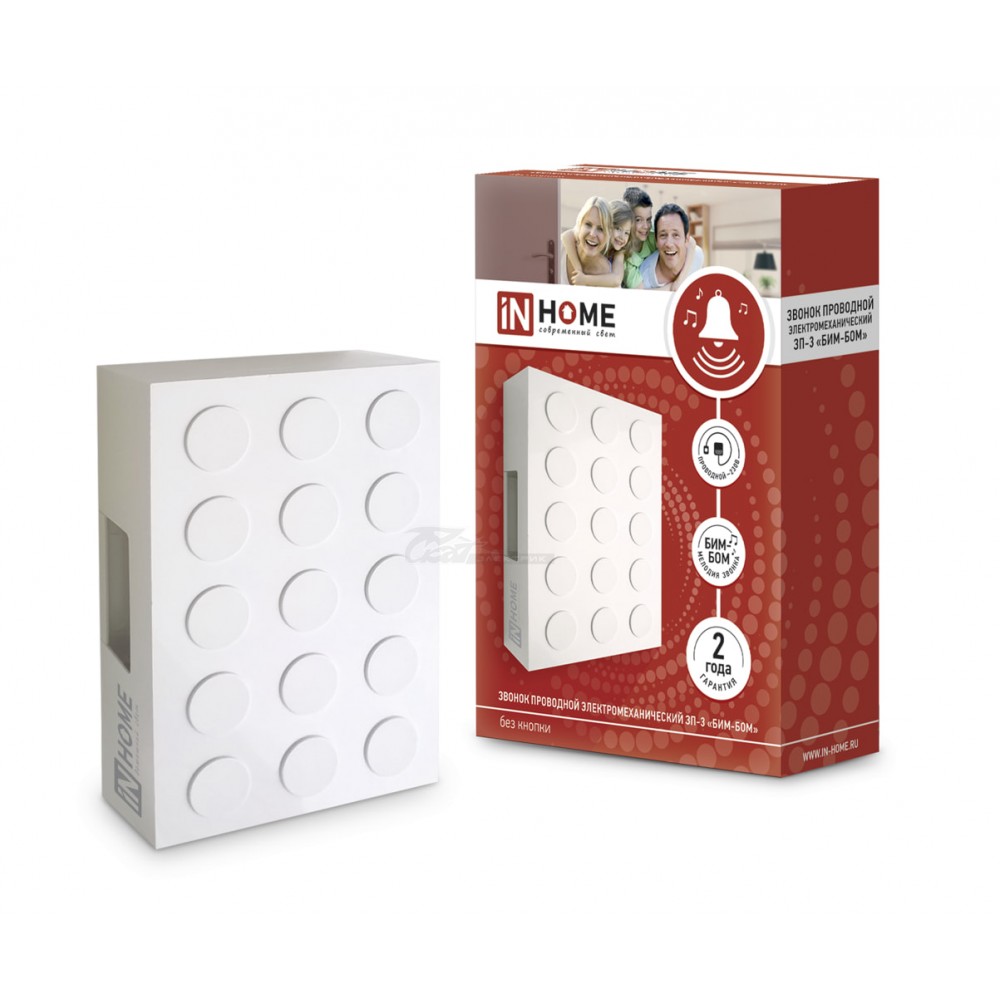Звонок проводной ЗП-3 электромеханический Бим-Бом белый IN HOME