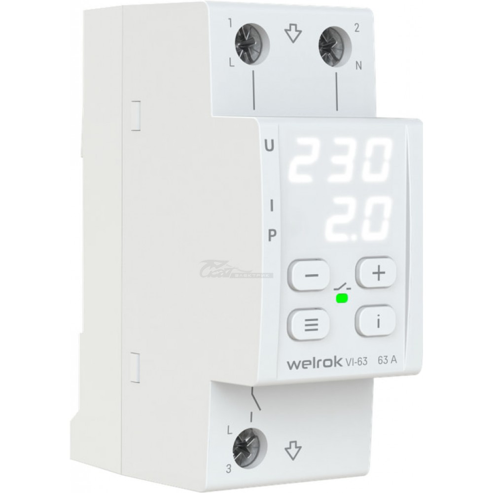 Реле напряжения с контролем тока и мощности VI 63А белый индикатор Welrok