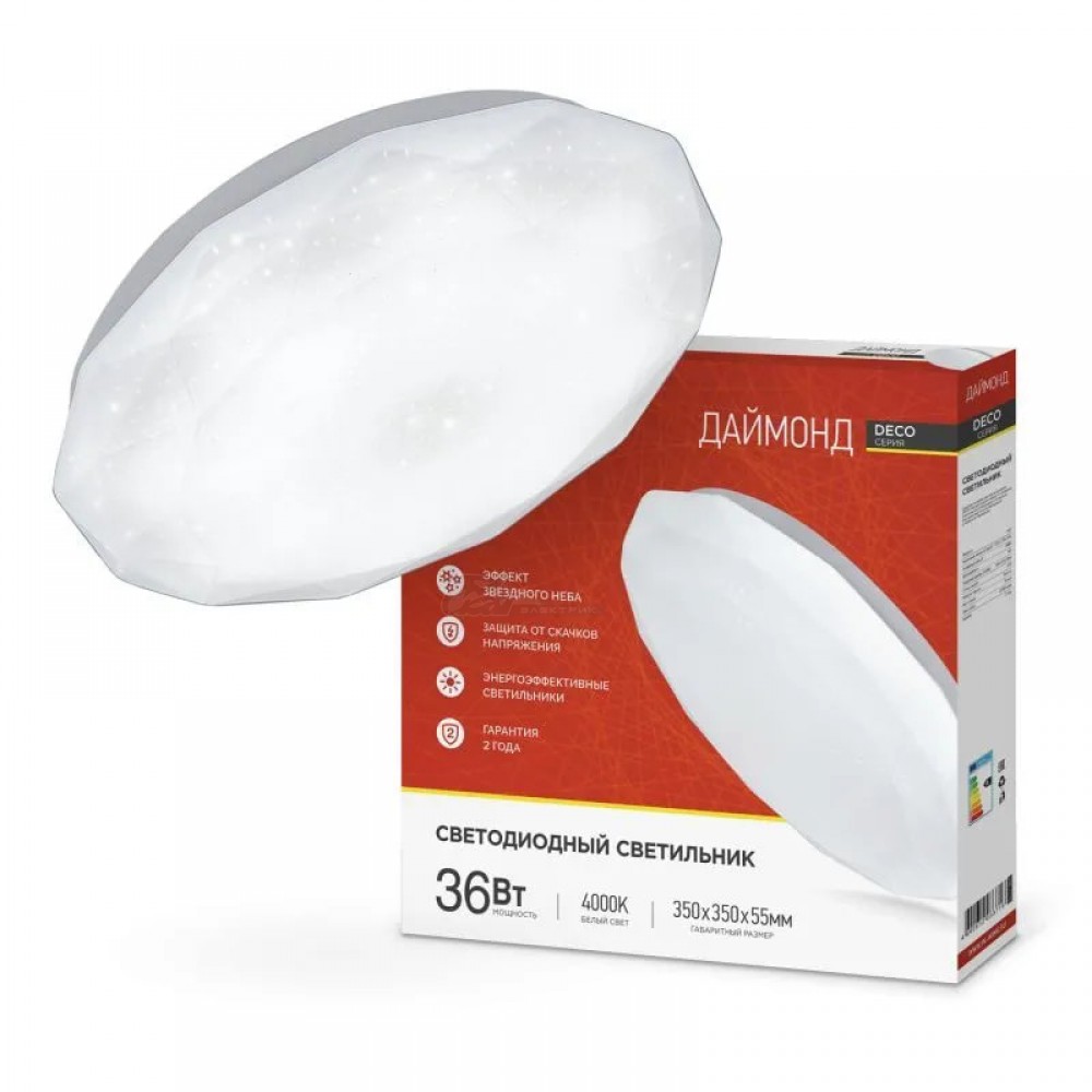 Светильник светодиодный DECO Даймонд 36Вт 230В 4000К 3240лм 350х55мм IN HOME