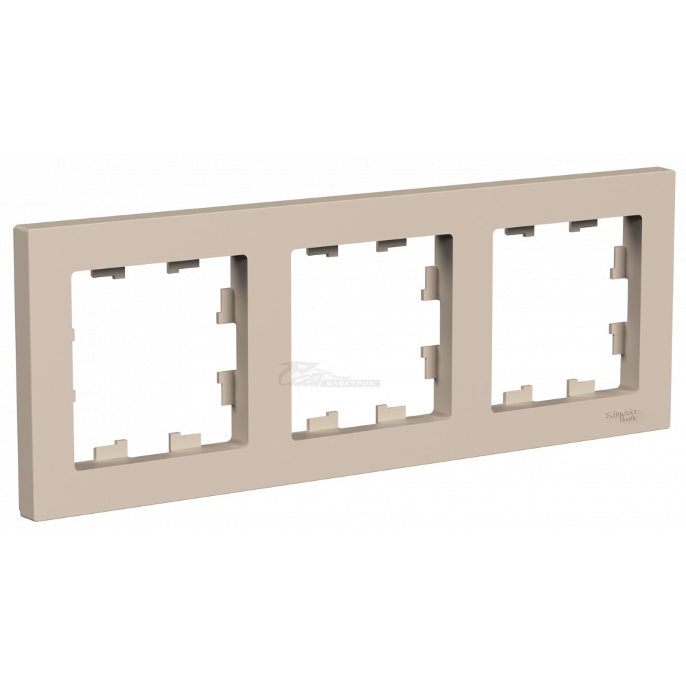 Рамка Systeme Electric (ранее Schneider Electric) серии AtlasDesign в цвете ПЕСОЧНЫЙ трёхместная. - Устанавливается в вертикальном и горизонтальном положениях. - Лицевые детали из качественного ABS-пластика, устойчивого к царапинам и УФ-излучению. - Позволяет гармонично вписать электроустановочное изделие в интерьер помещения.
