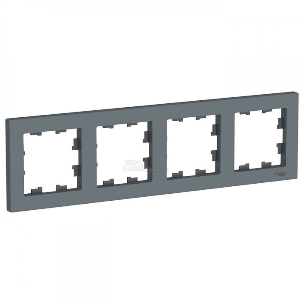 Рамка Systeme Electric (ранее Schneider Electric) серии AtlasDesign в цвете грифель четырёхместная. - Устанавливается в вертикальном и горизонтальном положениях. - Лицевые детали из качественного ABS-пластика, устойчивого к царапинам и УФ-излучению. - Позволяет гармонично вписать электроустановочное изделие в интерьер помещения.