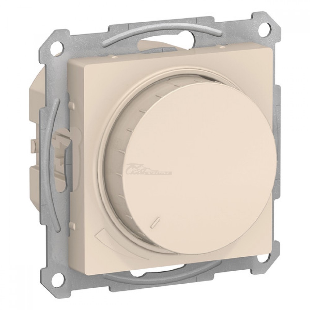 Механизм Systeme Electric (ранее Schneider Electric) серии AtlasDesign в бежевом цвете светорегулятора поворотно-нажимного на выходную мощность 630 Вт. - Светорегулятор позволяет установить в помещении комфортный уровень освещения. - Лицевые детали из качественного ABS-пластика, устойчивого к царапинам и УФ-излучению. -Может использовать также как выключатель или переключатель.