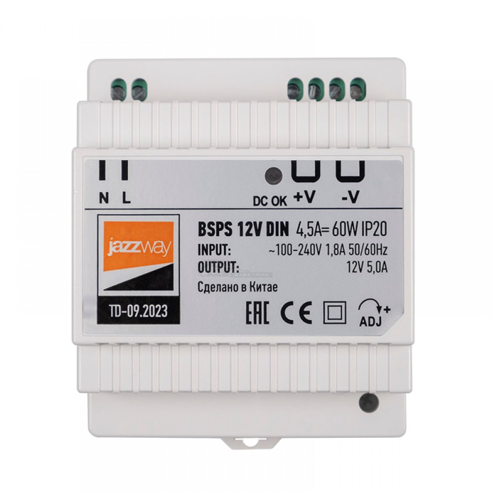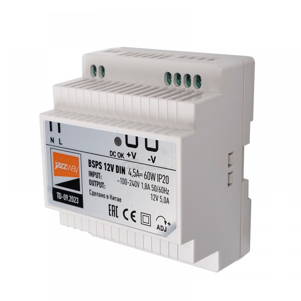 Блок питания 220В / 12v 1.8А 60W на DIN рейку IP20 3г гар. Jazzway