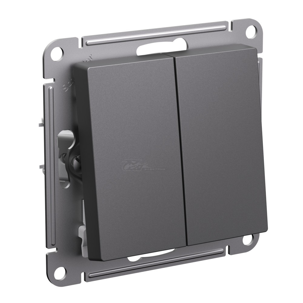 Механизм выключателя 2-клавишного Systeme Electric (ранее Schneider Electric) серии AtlasDesign в цвете БАЗАЛЬТ подходит для сетей 250 В, на ток 10 А. - Двухклавишный выключатель позволяет управлять двумя источниками света с одной точки. - Лицевые детали из качественного ABS-пластика, устойчивого к царапинам и УФ-излучению. - Усиленные прямые монтажные лапки для лучшей фиксации механизма в монтажной коробке.