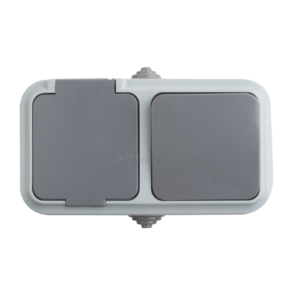 Блок (выключатель 1-клавишный + розетка 1-местная б/з) о/п 16А IP54 REXANT