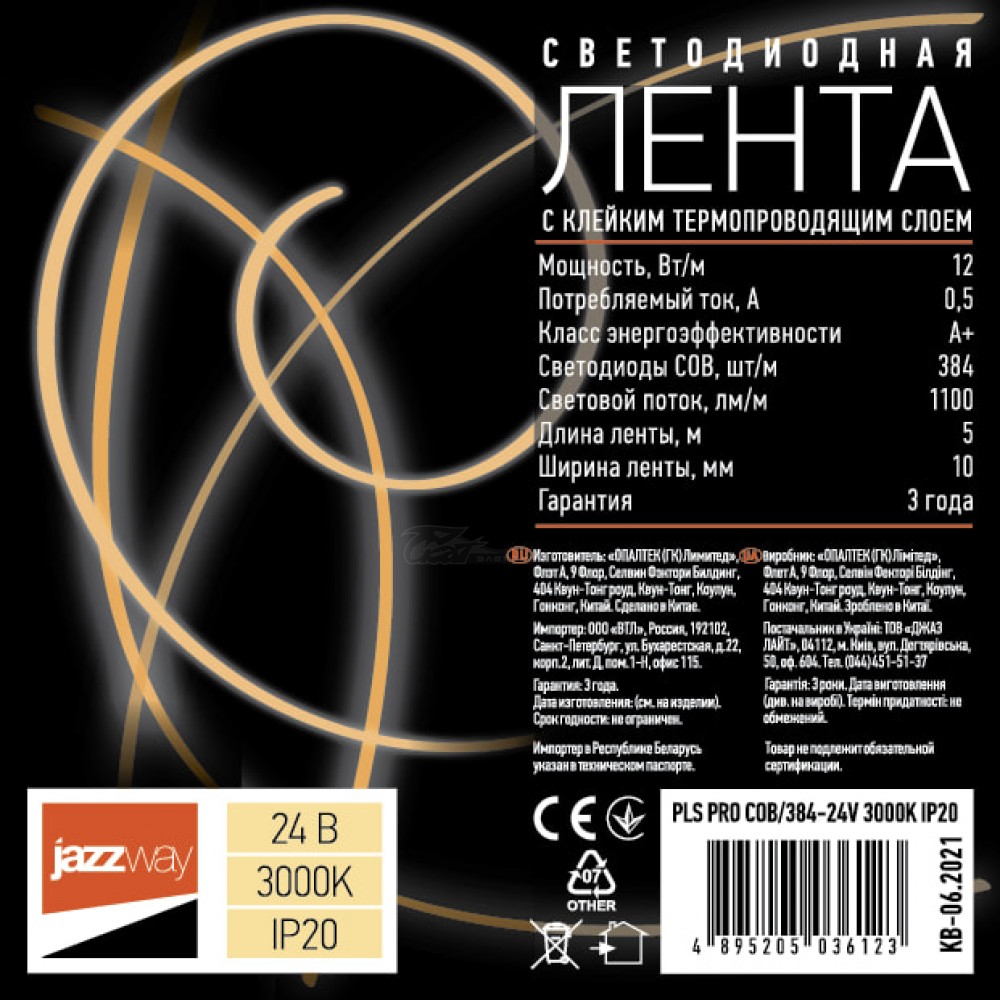 Лента LED PRO COB 24v 3000K IP20 12w/м Jazzway (м)